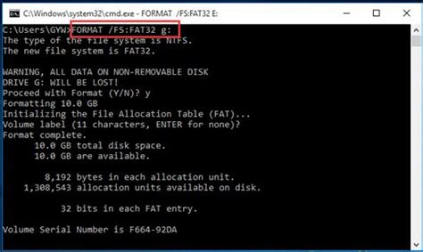 dos format command fat32
