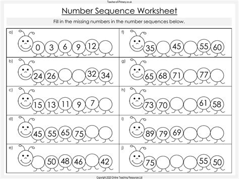 number sequence practice worksheets